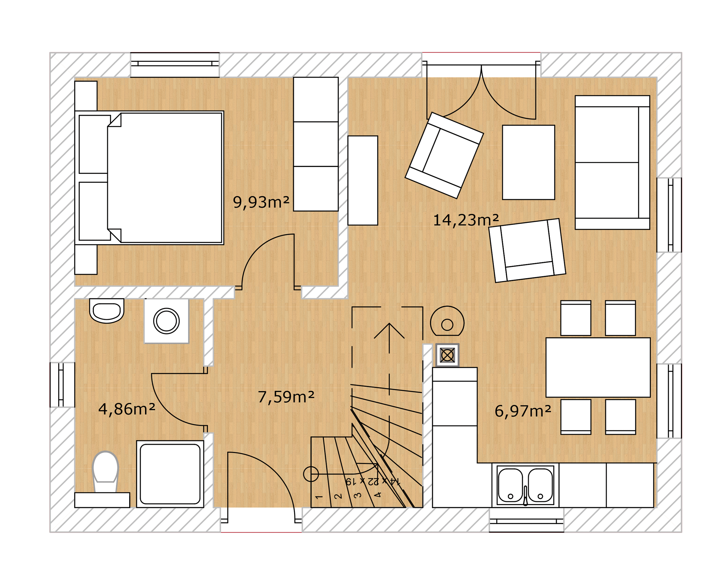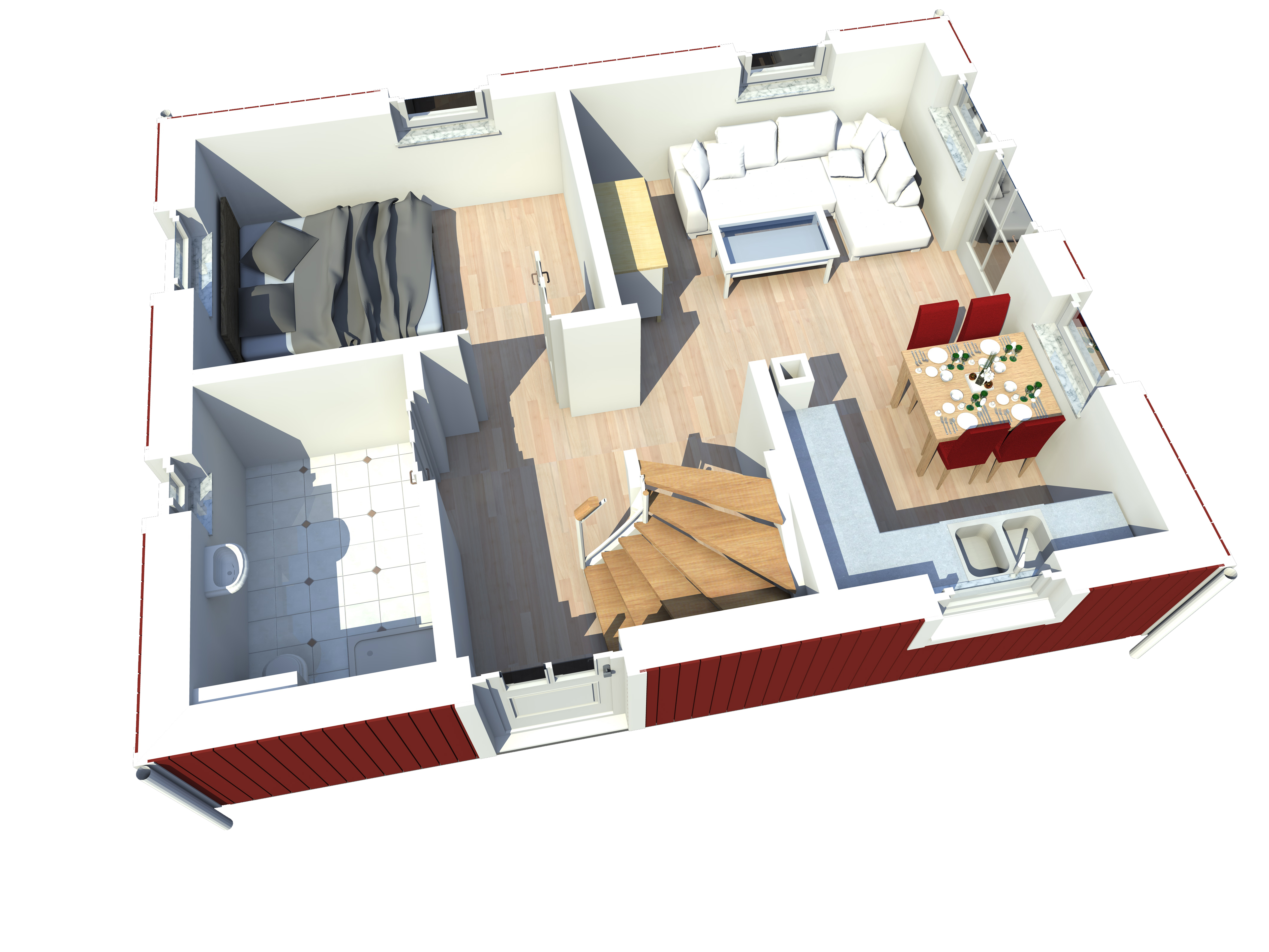 Die geschickte Aufteilung des Hauses macht den Nordkap 80 zu einem idealen Ferienhaus für Familien oder Paare, die einen Ort suchen, an dem sich Alltag und Erholung perfekt verbinden lassen. Ob als gemütliches Urlaubsdomizil, Wochenendhaus oder Rückzugsort im Grünen – dieses wohldimensionierte Holzhaus vereint skandinavische Wohnkultur mit funktionaler Planung.